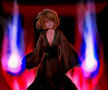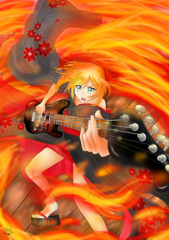 One of my most favorite Vocaloid songs! Honestly I was surprised to see that it was originally sung by Rin, since the Wagakki Band version is more well known.I haven't really ever tried drawing fire digitally before, so I'm glad with how it came out. Hopefully the lighting isn't too weird lol