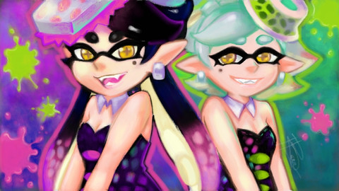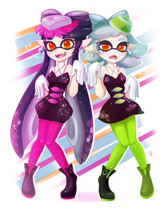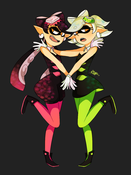 i love their poses aaa <33 omigosh and you are so god at the Splatoon painting style ;w ;;;; this is beautifulllll <333