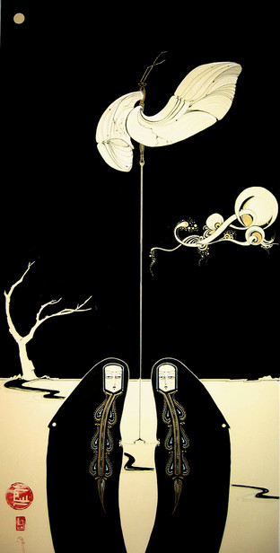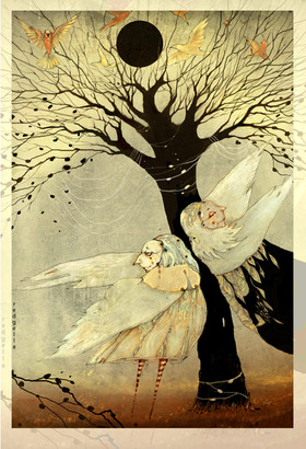 First, let me say your work is stunning. There is a Alastair/Harry Clarke quality about it that is beautiful & a little unnerving. Secondly- dammit! You just made a liar out of me. I was bitching & moaning earlier about how the front page hadn't had anything on it in ages that wowed me (not that there wasn't some nice stuff [he said, covering his ass])....then up pops "Dragonfly". Wow.