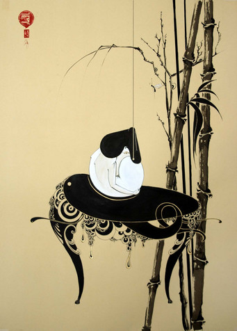 Tan, Black, and White is one of my favorite color schemes. This piece reminds me of Herbert Baglione or some of Dave Kinsey's work. I enjoy the very original characters and their elongated features. Very Nice.