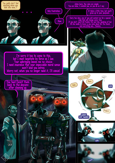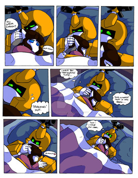 Okay I know I already commented on this page but I love how the light from XR's eyes is interacting with the rest of the scene, especially where he's face down in the pillow and there's the glow around his face so you know he's staring hopeless and wide-eyed into the pillowy void.