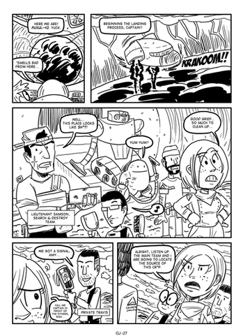 I really like the lineart on this page, especially on the panels with Jax and XR, it's very crisp and clear.