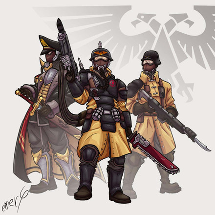 left to right ( Quarter master Barrett Von Jaegar, Lord Commissar Stiener Von Wolfkin Kreave, General Dieter Von Vilhelm)Based off of the models.
