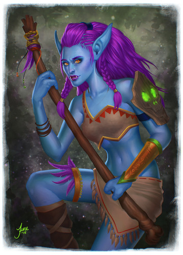 She's gorgeous! I'll have to commission you at some point as I really need art of my own troll shammy and you draw female trolls so perfectly!