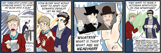 I already had the idea of doing John and Sherlock in Star Trek garb and the 'red underwear' meme seemed to fit in well. Plus John being Bones was just a given