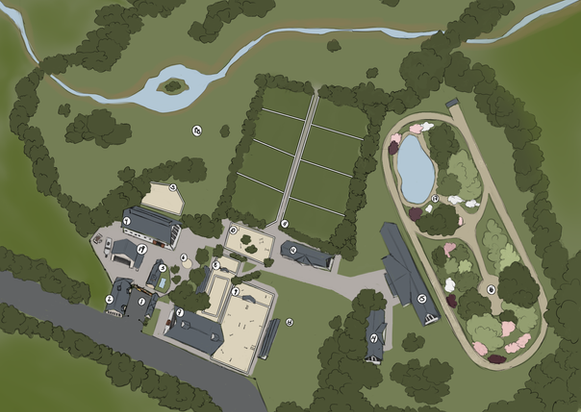 Welcome to Featherstone Ranch! We are located in the vast lands of Tamar Valley, Engeland, where three brothers decided to breath new life in an old ranch. The previous owner was growing old, hitting his eighties, and having the property growing him out of hands. Everything needed a little touch, a lick of paint or a new roof, but once the brothers were done it was restored in it's old glory.1. South Wing: Horse Barn | Blueprint Box Layout