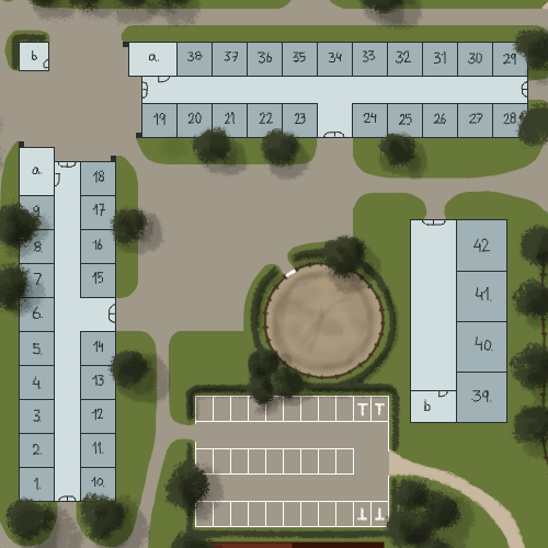 In between the jumping arena and the cross country track is a big terrace with place for all of our staff our visitors to take a break or relax and overview the training of one another. There's also a view benches which figure as a tribune for both sides to look onto too.