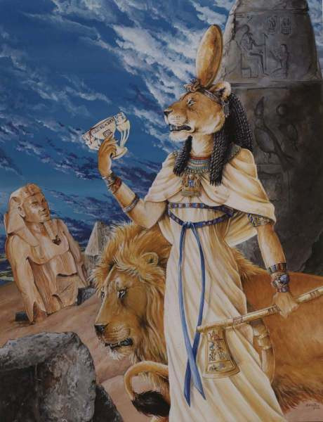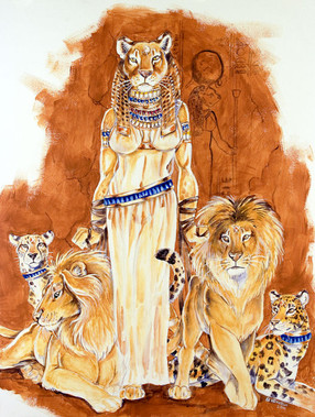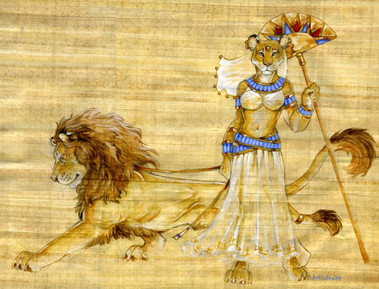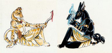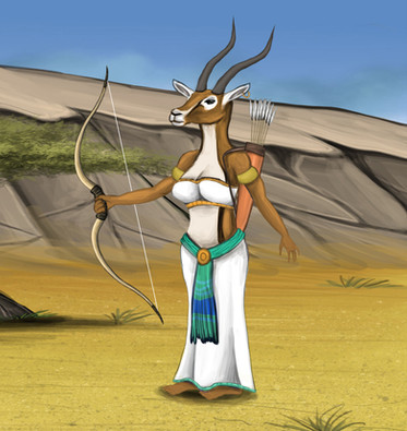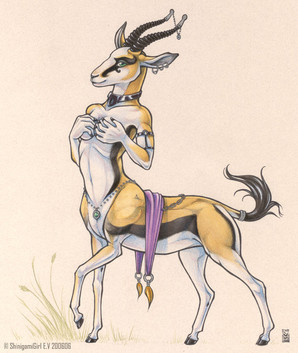 I actually bought a couple sheets of this paper to play with a new style of name badges but I snagged a sheet to play around with this. It has a such a nice texture that I think it lends itself to Egyptian themed pics. This is Satis. A not very well known Goddess, she is associated with the flooding of the Nile, hunting, war and fertility. One of her titles is "She who runs like an arrow. She is often depicted with Gazelle horns or as a Gazelle itself. She is often shown as a consort/wife of Khnum. I choose to show her as a Soemmering's Gazelle which was a gazelle known to the upper Nile and Nubia where her cult was situated. And last but not least, yes I know those are male horns but as her headress in art always shows the male horns I figured they'd work well on a morphic version8 1/2x11 watercolour on paper. Prints available