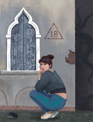 I like background too. it's not empty white paper. It is a part of drawing telling story about this girl. Besides it is nice that ravens combine with background. This is how the whole drawing is formed.