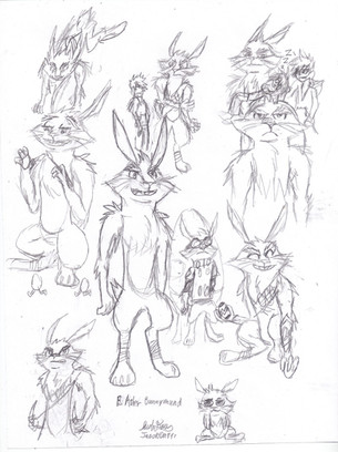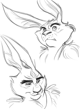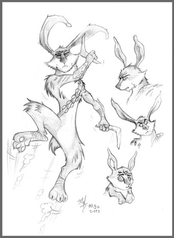 I wanted to draw Bunny again doing various lagomorph behaviors. The idea for the center drawing belongs to J-e-J-e since I used that picture as a starting point simply for practice. I used photos of real-life hares for the other two.Bunnymund belongs to Dreamworks.