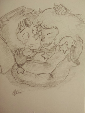 God I can feel the chemistry and warmth from this picture alone. I can see Lapis coming out of the barn where she usually is and Jamie would probably show her more of the outside world and help her explore more of Earth since he's an aspiring actor and likes to travel from time to time from what I've seen.