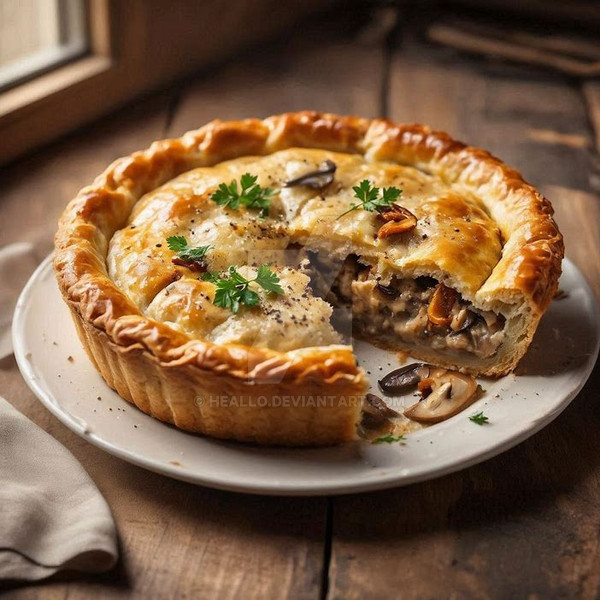 #ai #dreamup #digitalart #photography #comfortfood #foodart #foodphotography #foodstyling #garlic #pie #stilllifefood #savorypie #artoffood #kitchenmagic #ai_art #bakingwithlove #visualfeast #culinarycreativity #flakygoodness #goldencrust #cozykitchenvibes #garlicpie #pieloversunite #herbgarnish