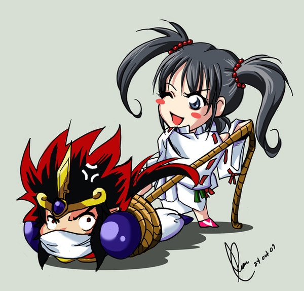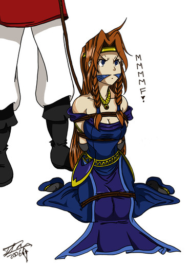 The drawing I am thinking of is Hoggmeiser (above mentioned demon) telling a bound and gagged(and very angry) female Laharl that she has been signed up as a princess needing rescued for an event similar to the damsel-mini game event. (Which will be both a live and televised event ppv event that tickets can be bought for.)"