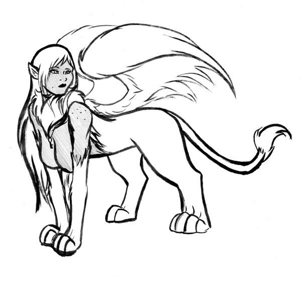 Drawing of a new character for a little piece I'm working on. Her name is Raelena (Ray-Lee-Na) and she used to be a human but is now a Sphinx. The transformation recently occurred and she is distressed, to say the least. It's been awhile since I've drawn anything, so my hands are a little un-practiced. Hope you like it anyway.Related content