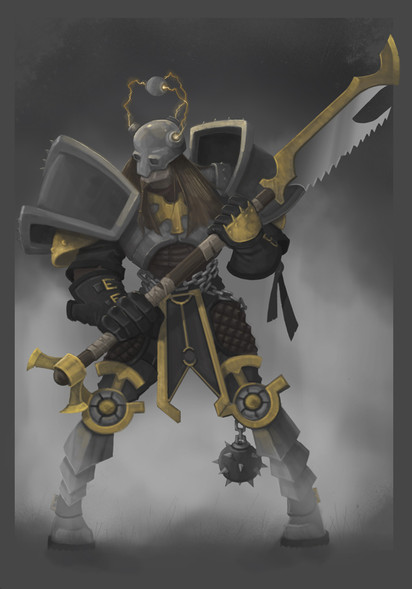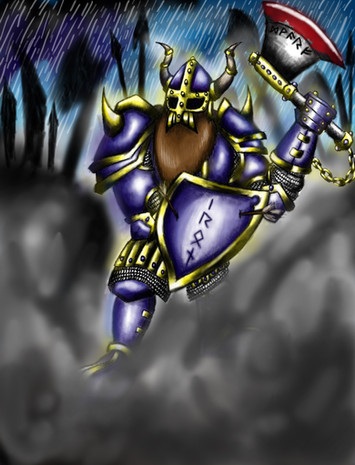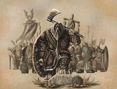 Draug looked into the chaos around him for his next target. He saw his cadre-brother Garm skewer several defenders with a burning spear as he used his free hand to smash in the face of a Skre trying to get at his legs. To his left Ulf stomped in a Skrae's skull, hefted the thin creature, and pummeled two of the corpse's comrades. Draug turned to look and--