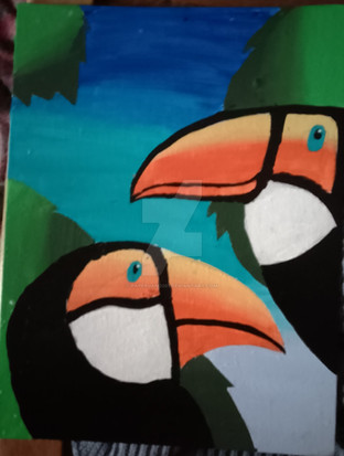 Acrylic painting of some Minecraft parrots in the jungleRelated content