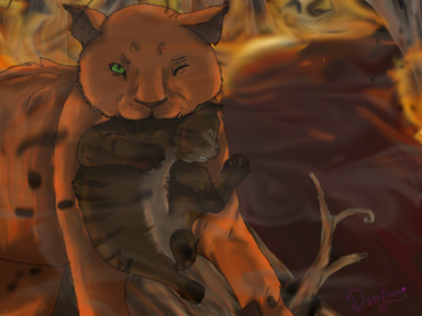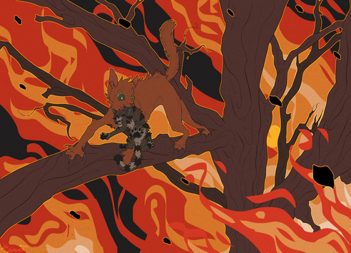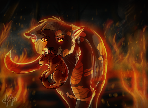 It's been too long since I didn't do a full drawing ! Since I'm really in the warrior series, I'll draw some scene that I liked a lot. The first one is when Fireheart saved Bramblekit from the fire. This part of the book was very emotional and I really enjoyed it.So you know, I've finish cycle two's first book. I like it so far, but it feels strange to change the point of view. It's pretty hard to return with some immature characters when you've already see Firestar becoming an adult ... But they'll grow up.