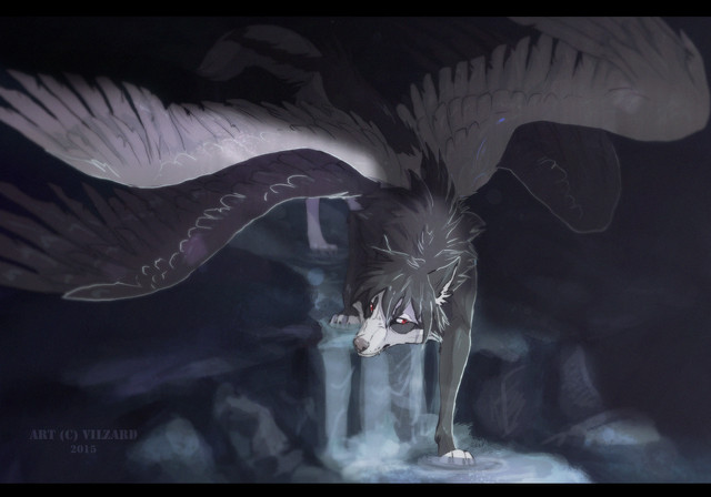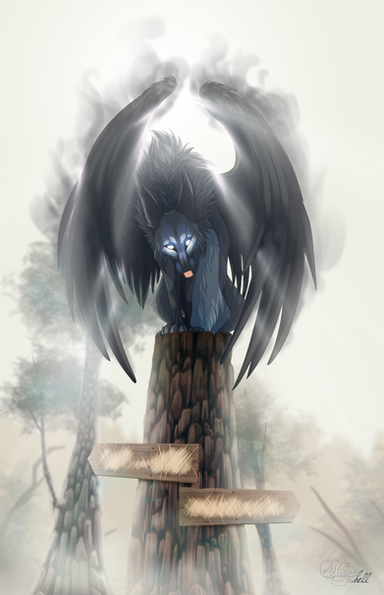 Quant à Hecate... Elle est tout simplement magnifique, la pose tout en mouvement, les détails sur son pelage (on voit vraiment qu'il est tout humidifié, ce n'est pas toujours un effet facile à rendre !), et ces magnifiques ailes superbement dessinées