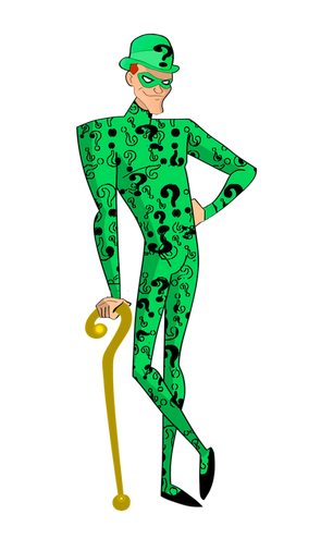 Edward Nigma grew up an overly curious child in the town of Waterbury, Connecticut. There, he annoyed his parents and other adults with his unending stream of queries. He soon decided to become the person with all of the answers, even if that meant forming the questions himself. The trigger for his obsession was further pulled when his teacher announces a class contest, which would reward the student who can solve a very complex puzzle the fastest. Setting his sights on winning, and craving the glory and satisfaction that will come with the victory, Nigma sneaks into the school one night, takes the puzzle out of the teacher's desk, and practices it until he is able to solve it in under a minute. As predicted, he wins the contest and is given a book about riddles as a prize. His cheating rewarded, Edward embraced the mastery of puzzles of all kinds and became fixated on similar thrills, which spurred him to lose interest in an ordinary job and similarily cheat by taking on the life of crime. As a result, he became one of the most brilliant criminal minds known as the Riddler, not only developed to steal riches and garner mass attention, but to prove his superiority over anyone around him.