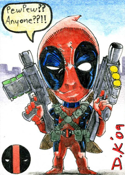 Wow! That's awesome! A great chibi of Deadpool, but not too stylized as to be Widdle Wade! I love this piece!