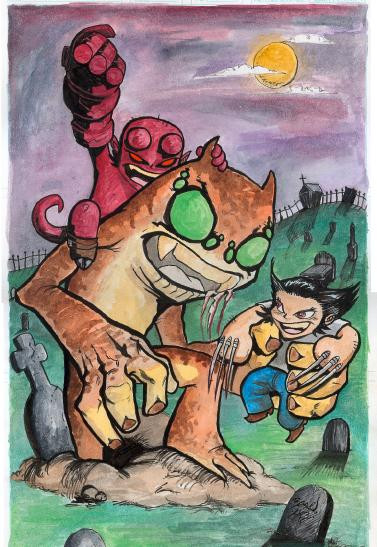 Etrigan.5.5x7in, Prismacolor and ink on Bristol.