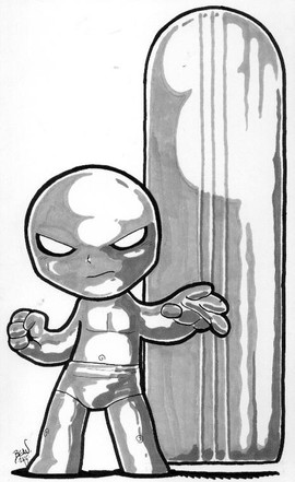 The Silver-age costume.5.5x7in, Prismacolors and ink on Bristol.