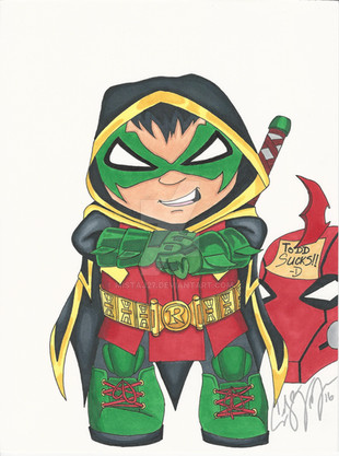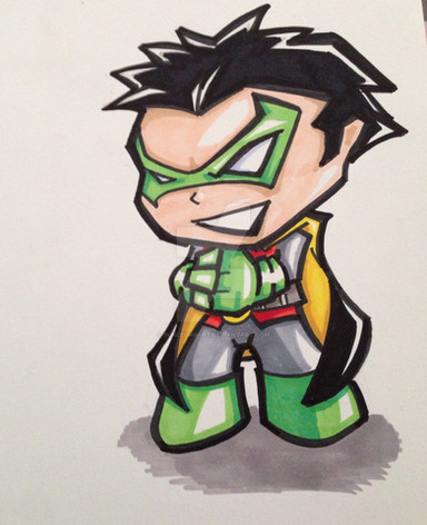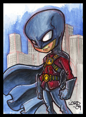 My first attempt at the Boy Wonder. Notice the signature. Long before the Titans cartoon.6x7in, watercolors and ink on Bristol.