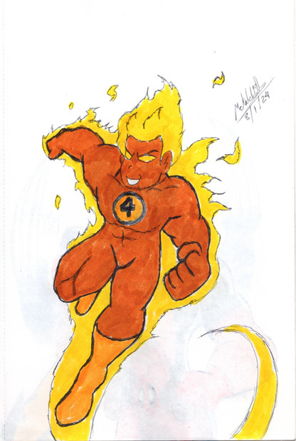 My first Johnny Storm.5x6in, watercolors and ink on Bristol.