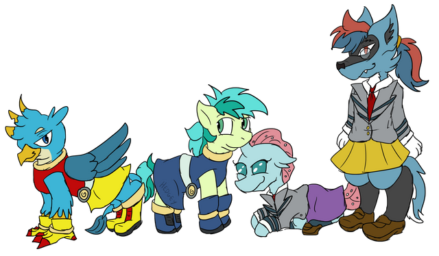 Commission forΒ gundamfan2 Β of Kira Aura, Jon Talbain, Minster Jackal and Fan Aura! Thank you so much for commissioning me! ^^