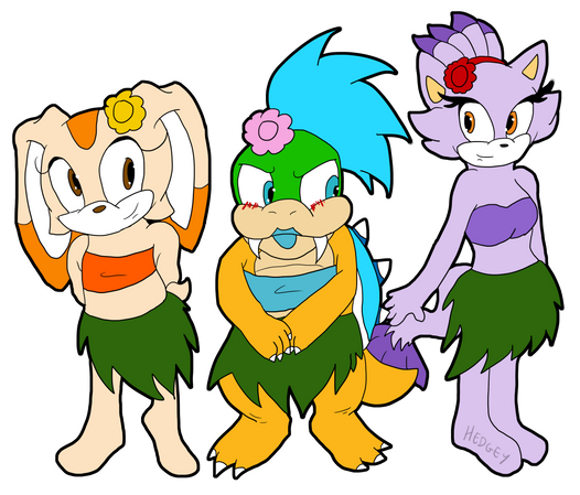 This is a commission for HamSlicer who wanted someone to finish off his awesome sketch of Sticks in beachwear and line/colour it! So most of the original sketch and idea are by Hamslicer, all I added were the legs and feet, the tail and a refined hand and then put the colours and lines on ^^I enjoyed working on this, I loved seeing two styles come together, it was tons of fun! Thank you so much for this opportunity!