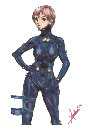 this is a fan art to "Key" from the "gantz" anime\manga.That has started as a coloring practice, but I finished it eventually.