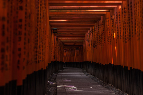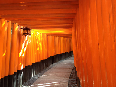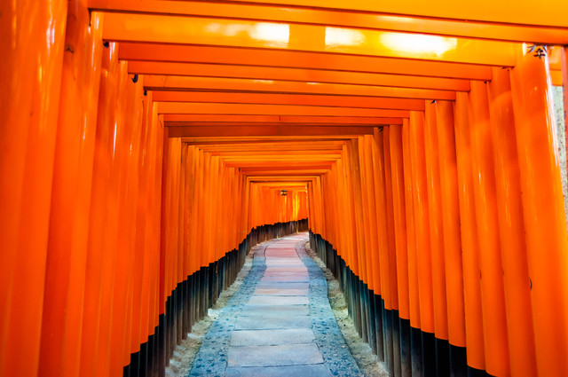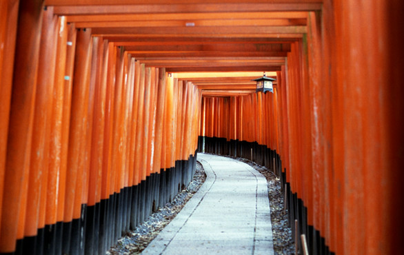 A small part of the famous torii gates of the Fushimi Inari shrine complex in Kyoto, Japan.Hello! I'm Mr. Cliche!