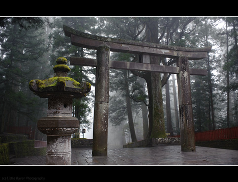 I love the somewhat eerie feeling the shadows give that shot and how the red shrine stands proudly in between. <3