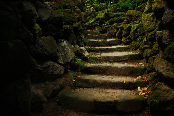 I love how you composed this picture. every angle seems to draw the eye to the mysterious doorway at the top of the stairs. An excellent photo.