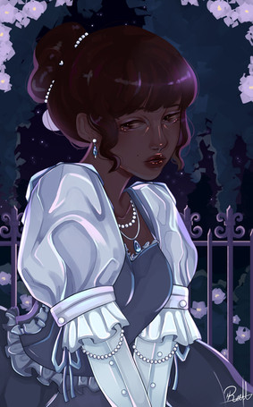 I don't have much to say about this drawing other than that Im really happy with it!And the blue that I used reminds me of cinderella's dress so I added those little white things to kinda give it a princess vibe if that makes sense