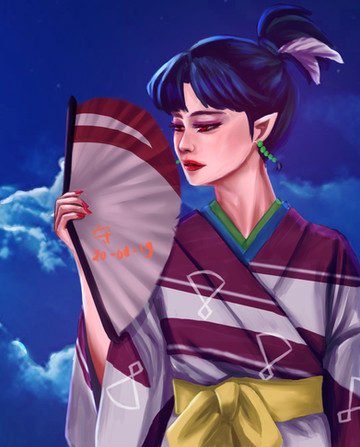 To be honest I don't know if I like this one or not..itt mostly has to do with the shading I thinkAnyways I don't know if you can see it but I make her face a bit whiter than her neck and hand and that's because I wanted the makeup to be that of the japanese edo period