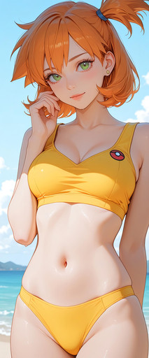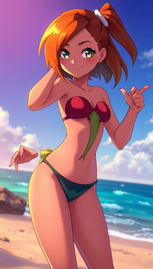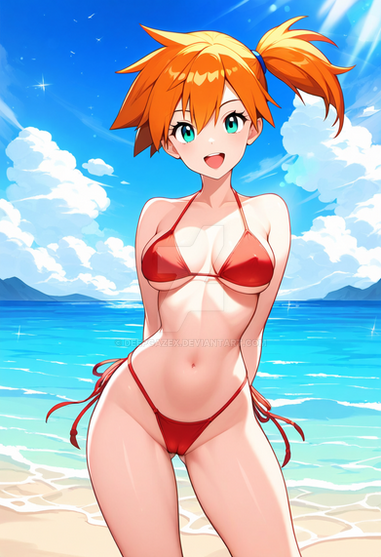#fanart #cartoon #pixelart #videogamefanart #pokemon #pokemontrainer #digitalart #adoptable #ai #anime #animestyle #beach #bulbasaur #cuteanimegirl #exclusive #go #misty #mistypokemon #orangehair #pokemonfanart #psyduck #suspenders #animemangagirl #aiartist #pokemonnintendo #gingerhairedgirl #waifu #aiart #adoptablesopen