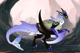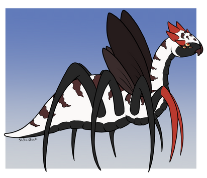 My OC Dion, she is an alien carno.Β The way that the alien works is it can latch onto something organic and it can grow/ replicate itself into it. Dion replicated herself from a carnotsurus bone, she's actually the tail but uses the carno as a flesh puppet.
