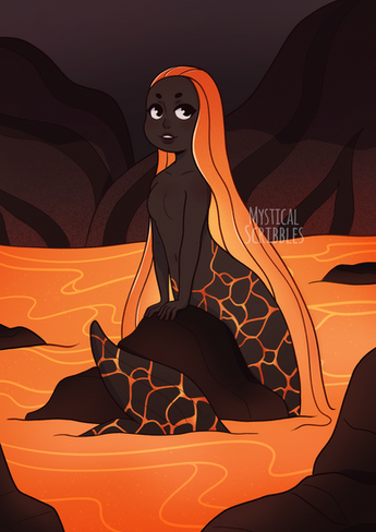 #character #crab #knife #lava #magma #mermaid #oc #ocean #sea #with