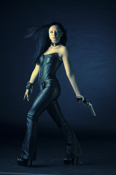 Looks good, I would only change the gun to be something, not a revolver. Nice outfit and lighting.