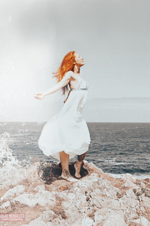 #bluedress #cassis #cliff #france #freedom #immensity #nature #nikon #photography #portrait #provence #redhair #sea #stone #wind #pakeskin #tattooedgirl