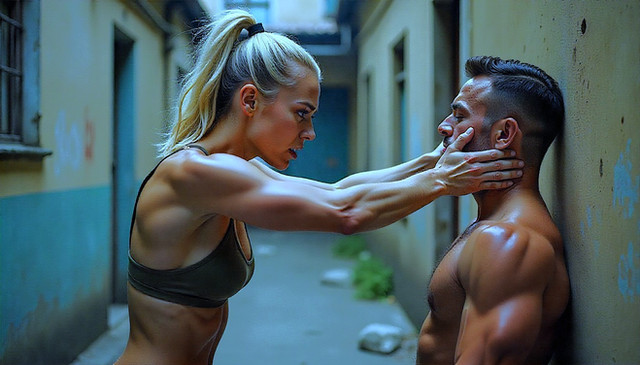 As he struggled and strained against her, trying to push back, to no avail, she whispered in his ear, "You probably thought I didn't hear you talking to your 'bros' when you saw me in that club a bit ago, saying how you were gonna take 'that hot little black-haired chick'. Well, you'll have a story to tell, but not the one you were expecting little man. Be good, and you might end up with a good story...be bad...and...well...you don't WANT to be bad."