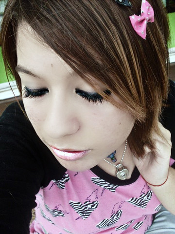 U are freakin gorgeous! omg I do the same eyeshadow...pink on top, turquoise along the bottom! but my eyelashes are no where near as long as yurs! lol are yurs false in the pic?