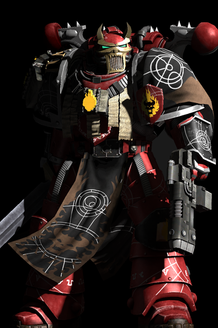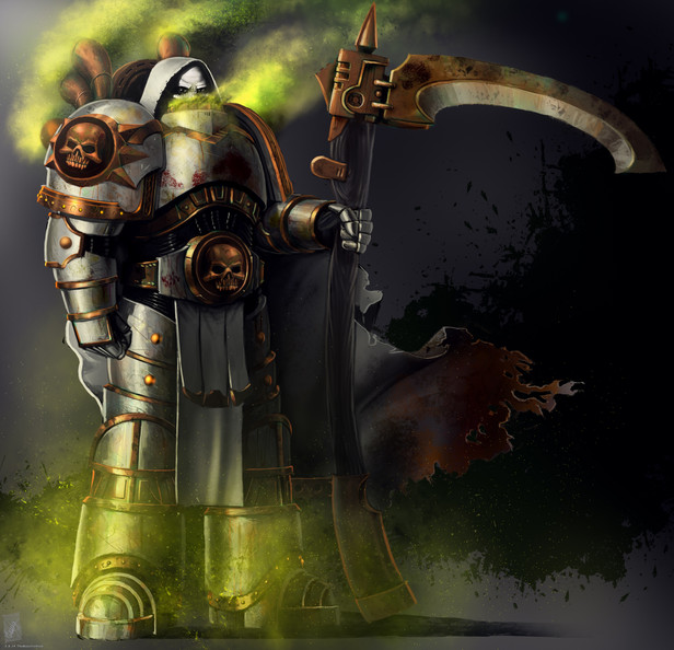 This is a fan art I made for this semester.Calas Typhon, 1st Captain of Death Guards Legionaire Astartes.