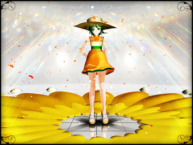Sunflowers remind me of June for some reason, and Zunko's birthday is on the 5th (I think). So I used both for my ID.model by もものはさん