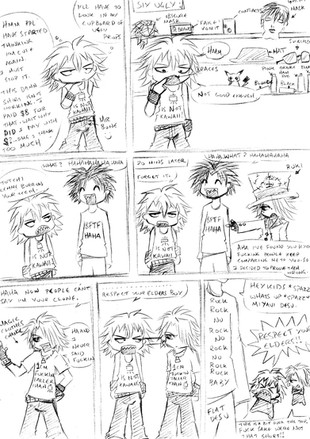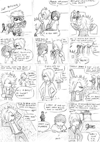 why are you sad XD? I show affection for bands through comics like these >XD there's gazette, girugamesh, dir en grey among others in my gallery but I just had to do something about that hand thing of Ibuki's plus they're guys they would do that anyway XD. But if you were after cute whatever fanart there is some in my gallery cos they are my fav band |D