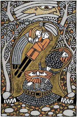 Norse mythology.... Thor and his company (Röskva, Thjálfi and Loki from Asgard) in a giant glow on their way to Utgard-Loki...Related content