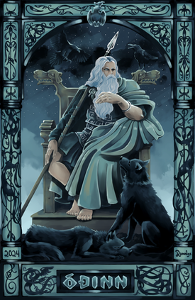 I almost didnยดt notice the rune stones all over the ground before the throne...ย I love your style, this is somewhat how I imagined the Odin from the myths and your artwork does justice to him (and his other mythological fellows). Marvelous job! ย