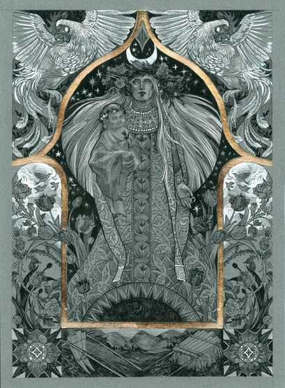 By acrylic colors on canvas, by my own hands after nearly 20 years of studying norse mythology