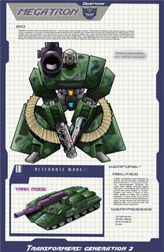 The colours I've given him are a cross between his G1 cartoon appearance and his Universe toy versions. His profile is based on his toy back of the box bio and tech specs. His quote was actually the title of the single episode he appeared in. His missiles and launchers are based on the G2 seekers.Original lines for his robot mode [link]